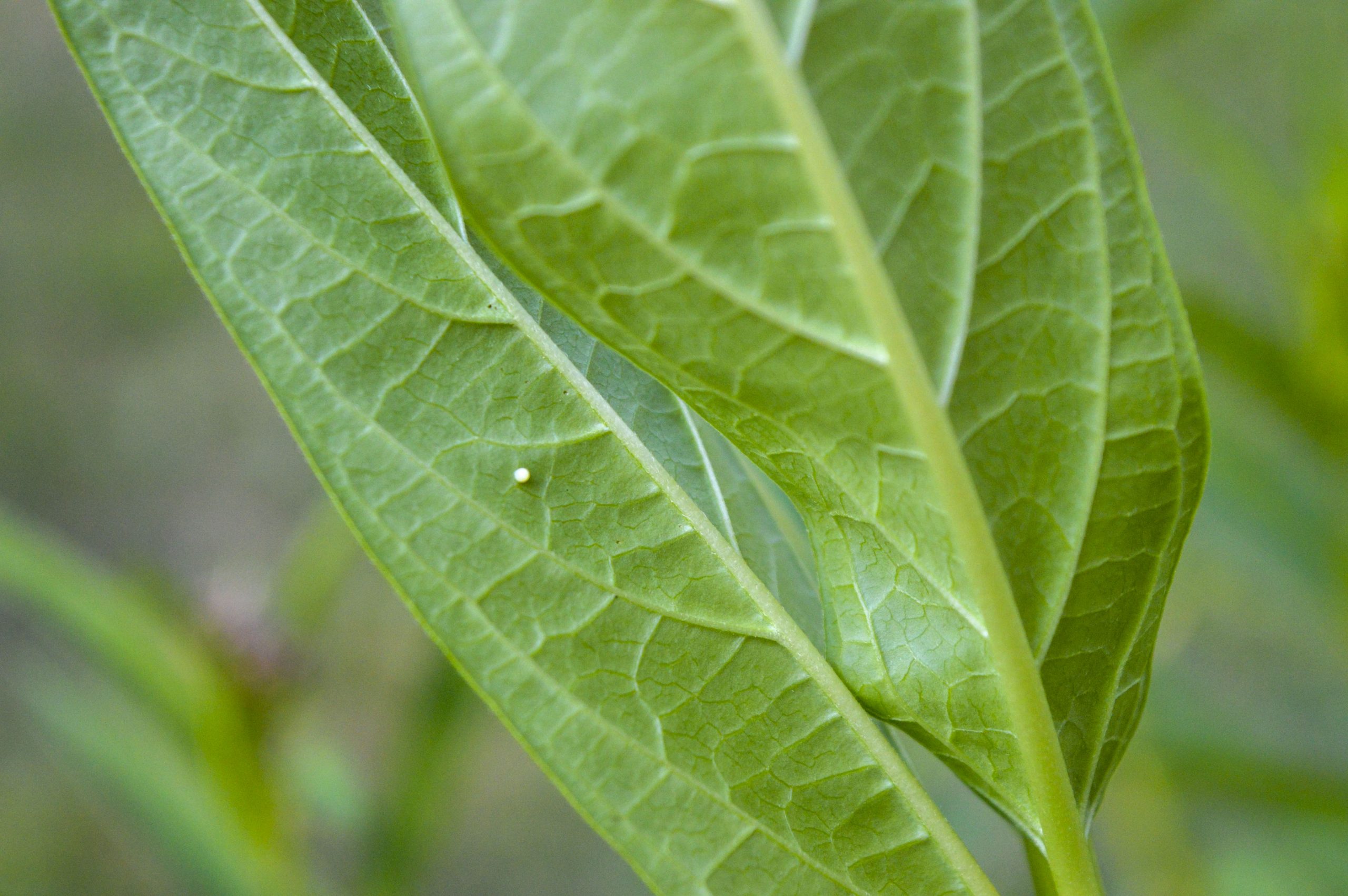 - Monarch egg on milkweed plant July 5, 2021. Once the eggs turn into caterpillars, Goble takes them to her cages so they can continue eating and growing.
