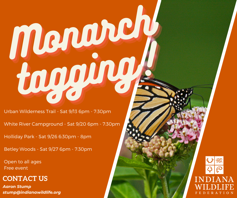 We will meet on the back patio of the National Institute for Fitness and Sport (NIFS) before walking down to the Urban Wilderness Trail. Long pants and closed toed shoes are recommended. This event will not take place if there is rain to ensure the safety of the butterflies.